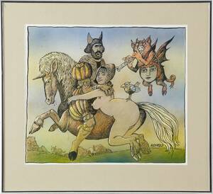 ARNOLD, Hans (1925-2010): Figurkomposition på häst, signerad Arnold, blandteknik, ca 31x36 cm. 286588.