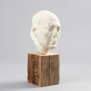 SKULPTUR, manshuvud, gips, monterad på sockel av trä, total höjd ca 37 cm. Skador, bortfall.