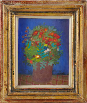 JIRLOW, Lennart (född 1936): Blomterstilleben, signerad L. Jirlow, olja på pannå, 18x14 cm . 278736.
