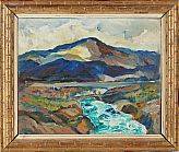 OIDENTIFIERAD KONSTNÄR (1900-tal): Fjällmotiv med fors, otydligt signerad och daterad, olja på duk, 60x73 cm