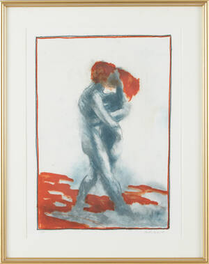 DAHL, Peter (född 1934): Kyssande par, signerad och daterad Peter Dahl -81, PT, färglitografi, ca 58x42 cm. 265547.