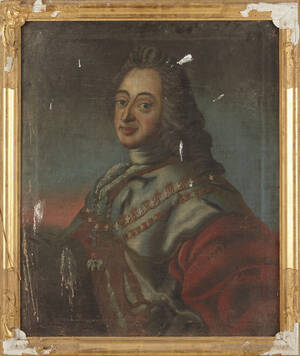 CARL GUSTAF PILO, hans art (1700-tal): Porträtt av konung Fredrik V av Danmark, olja på duk, ca 46x39 cm. Uppfodrad på pannå, krackeleringar. Läs mer...