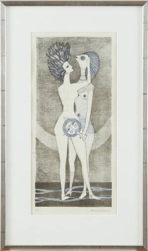 Max Walter Svanberg (1912-1994), Sverige. Kvinnofigur. Signerad, daterad -42. Blandteknik, bildmått: 33x19 cm, yttermått inklusive ram: 57x42 cm. Max Walter Svanberg, född 1912 i Malmö, Läs mer...