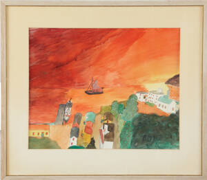 PETTERSSON, Primus Mortimer (1895-1975): "Röd himmel", signerad PRP, akvarell, 32x39 cm. 260482.