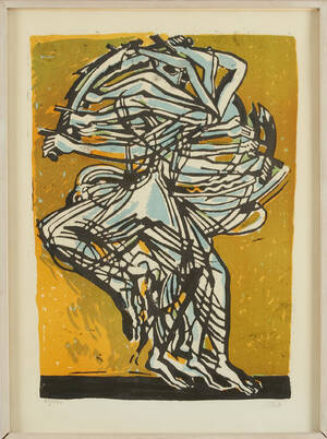 Axel Salto (1889-1961), Danmark. Signerad, numrerad 24/25, komposition, 44x57cm, yttermått inklusive ram: 58x70cm. Axel Salto, dansk grafiker och keramisk formgivare född 1889, död 1961. Läs mer...