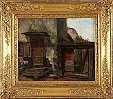 PAULI, Georg (1855-1935): Gårdsmotiv, monogramsignerad GP, signerad och daterad G Pauli 1872, olja på duk, 26,5x31 cm