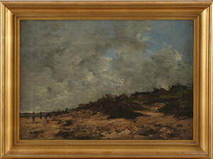 GUILLEMET, Jean-Baptiste Antoine (Frankrike, 1843-1918): Kustlandskap, signerad A. Guillemet, olja på duk, 40x56 cm. Krackeleringar.