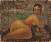 NIELSEN, Harry (1900-tal): Liggande modell, signerad Harry Nielsen, olja på duk, 60x73 cm