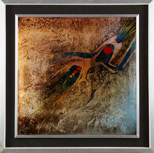 OIDENTIFIERAD KONSTNÄR (1900-tal): Komposition i emaljfärger, otydligt signerad, blandteknik, ca 57x57 cm . 243336.