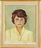 ZOIA, Krukowskaja (1903-1999): Flickporträtt, signerad Zoia med dedikation "Till Ernst"-1962, olja på pannå, 55x46 cm