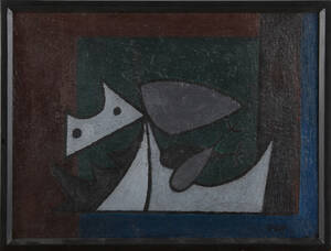 ORUP, Bengt (1919-1996): Komposition, signerad Orup, olja på duk, 37x50 cm. Krakelyr, duklagning.