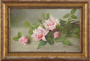 OIDENTIFIERAD KONSTNÄR (1900-tal): Blomsterstilleben, signerad A Bernard 1909, olja på duk, 25,5x40 cm. 237773.