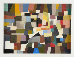 OIDENTIFIERAD KONSTNÄR (1900-tal): Konkret komposition, signerad, olja på pannå, 59x80 cm, även målning på baksidan. 235151.