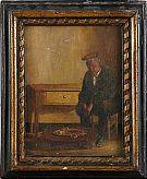 Avslutade auktioner liknande Interiör med sittande man oljemålning