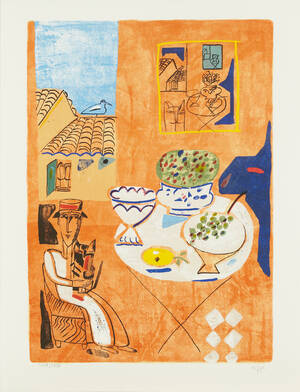 PYK, Madeleine (född 1934): Figurscen, signerad och numrerad 3418/5000, färglitografi, bladmått 64x49 cm. 231264.