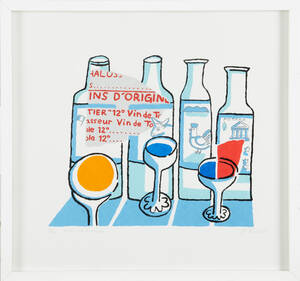 FREDÉN, Jonas (född 1959): (11): "Glas och buteljer", "Vårvind", Fisken, Tulpaner, signerade J.Fredén, ea, litografier, 39x41, 41x56, 37x29, 43x34 cm, "Glas och buteljer" är ramad, övriga oramade. Hanteringsveck.