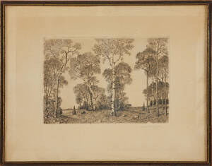 BERGMAN, Oskar (1879-1963): Björkbacke, signerad Oskar Bergman, etsning, 15,5x22,5 cm. Gulnad.