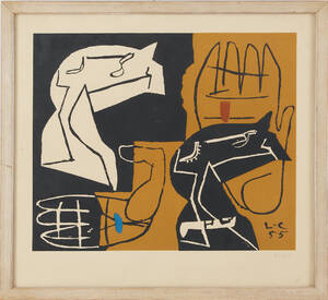 LE CORBUSIER (Frankrike, 1887-1965): efter, Komposition, signerad och daterad i trycket L.C 55, 38x45 cm. Gulnad.