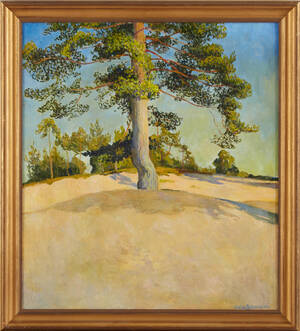 ARTUR BIANCHINI (1869-1955): Kustbild med tallar, Sandhamn, signerad Arthur Bianchini, olja på duk, ca 72x64 cm. 643220. Läs mer...