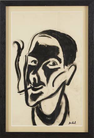 JON-AND, John (1889-1941): Självporträtt med cigarett, signerad Jon-And, krita, 38x23 cm. 214858.