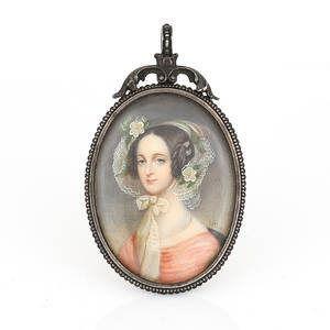 Miniatyr, gouache på ben, signerad Opie, ram i låghaltigt silver.