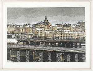 Svenolov Ehrén (1927-2004), Sverige. Mariaberget Stockholm. Signerad, numrerad 206/360, daterad -74. Bildmått: 33x44 cm, yttermått inklusive ram: 43x55 cm. Svenolov Ehrén, född 1927 i Stockholm, Läs mer...