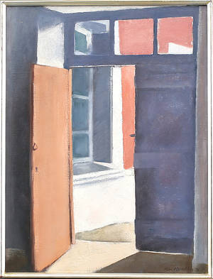 Björn Hallström (1916-1982), Sverige. Interiör med kakelugn. Signerad, daterad -78. Olja på duk, 73x55, yttermått inklusive ram: 76x58 cm. Björn Hallström, svensk bildkonstnär, tecknare och Läs mer...