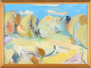 OLLE PETTERSSON (Sverige, 1905-1991): komposition, olja på duk, signerad, 80 x 40 cm. . Ej uppspänd på spännram, enstaka krackelyr. . Läs mer...