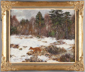 Johannes Ravn, Räv i skogslandskap Signerad J. Ravn. Olja på duk 54 x 65 cm. Läs mer...