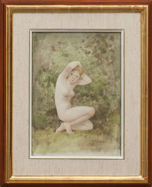 Robert Högfeldt (1894-1986), Sverige. Tre gracer. Signerad. Blandteknik, bildmått: 20x15 cm, yttermått inklusive ram: 41x38 cm. Robert Högfeldt, född 1894 i Eindhoven, Holland, död 1986, Läs mer...