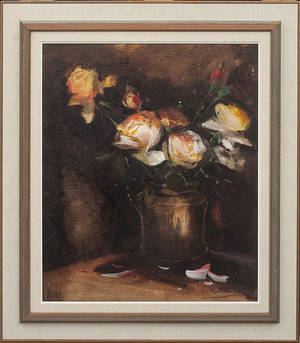 RUNE WAHLSTRÖM (1916-1968): Stilleben med rosor, signerad R Wahlström, olja på pannå, ca 60x50 cm . 846380. Läs mer...