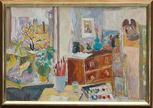 Lars Florén (1899-1979), Sverige. Den gula byrån, Signerad. Olja på duk, 65x50 cm, yttermått inklusive ram: 77x62 cm. Lars Florén, född 1899, död 1979, svensk Läs mer...