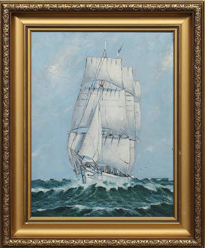 Historiserande motiv av svenska och danska skepp i strid. Ej ramad. 60 x 73. Läs mer...