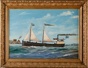 Okänd konstnär 1800/1900-tal , Hamnvy med fartyg Olja på duk, ca 24x15 cm Obetydligt ytslitage. Läs mer...
