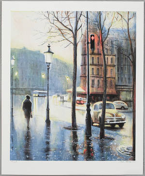 Mats Åkerman (f. 1956), Sverige. Tiden. Signerad, numrerad 28/240, daterad 04. Färglitografi, bildmått: 37x50 cm, yttermått inklusive ram: 57x69 cm. Mats Åkerman, svensk målare, tecknare Läs mer...