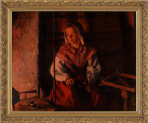 Sam Uhrdin, olja på duk, signerad och daterad -60. Vid spinnrocken. 100 x 88 cm. Läs mer...