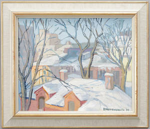 Motiv av gränd. Daterad: 1975 Signerad: B Nordencreutz Mått på duk: 41 x 33 cm Konditionsrapport: Mindre åldersbaserat slitage, Inga övriga anmärkningar. --------------------- Brita Nordencreutz Läs mer...