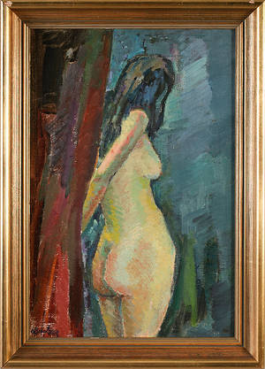 Olja på pannå, signerad.