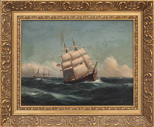 Okänd konstnär 1800-tal , Marint motiv Duk 39,5 x 56 cm. Krackelyr. Smärre fläckar. Läs mer...