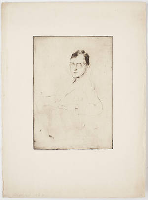 Axel Fridell, "Självporträtt III" Monogramsignerad i plåten. Torrnål, 1917. II état. Bildyta 17,8 x 12 cm. Ej examinerad ur ram. Missfärgningar. Läs mer...