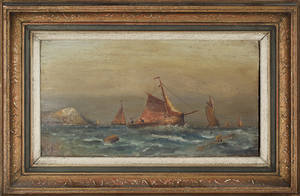 Okänd konstnär 1800-tal , Marint motiv Duk 39,5 x 56 cm. Krackelyr. Smärre fläckar. Läs mer...