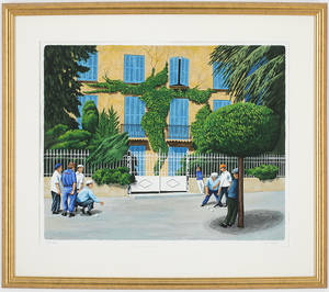 Larbre de Mai-restaurang Konstnär född: 1949 Signerad: Ulf Greder Numrerad: 214/360 Mått bildyta: 57 x 40 cm Konditionsrapport: Inga anmärkningar ----------------- Ulf Greder Color lithograph Läs mer...