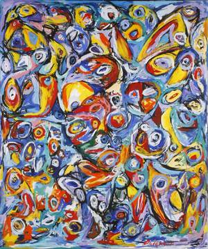 Niels Davernum, f. 1958. Abstract komposition. Acryl på lærred. Mål 120 x 100 cm. Dateret 2010
