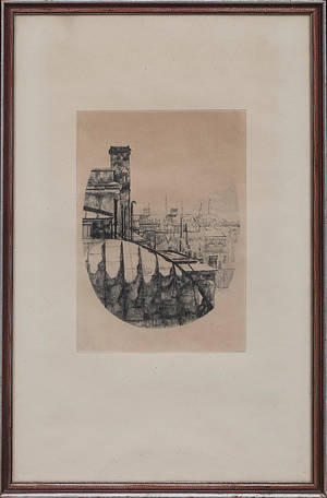 Axel Fridell, "Galärvarvet", I état. (Unikt) Torrnål, 1928-29, signerad med blyerts och benämnd "Prov". Med titel i blyerts "Galärvarvet, Stockholm 1929". P. 27,6 x 39,6 Läs mer...
