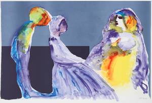 Peter Dahl, Två damer och ett krus.. Signerad Peter Dahl. Akvarell, bildyta 73,5 x 55 cm. Ej examinerad ur ram. Skador på ramen. Läs mer...
