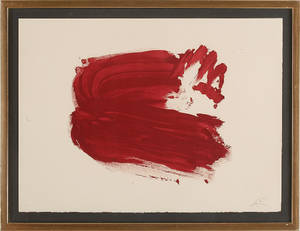 Antoni Tàpies, Utan titel. Färglitografi. Signerad Tapies och numrerad 61/100 med blyerts. Bladmått 55,5 x 45,5 cm. Ej examinerad ur ram. Läs mer...