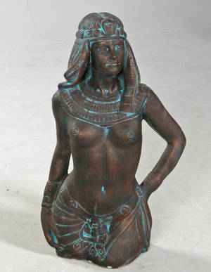 Haveskulptur forestillende egyptisk kvinde, i støbt stenmasse herefter bronceret bemalet. H. ca, 80 cm. Vægt ca. 68 kg.