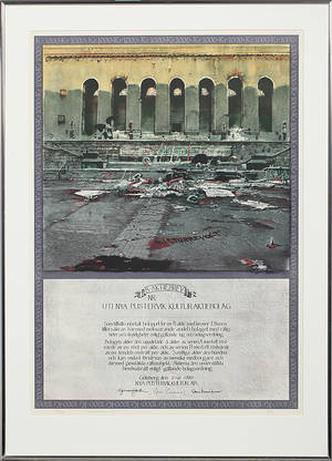 Roj Friberg, Kollapsad bro Färglitografi, 1981, signerad HC. Bladstorlek 69 x 80 cm. Oramad. Läs mer...