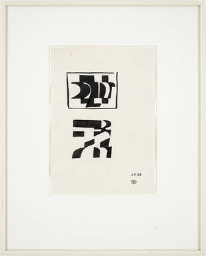 Lennart Rodhe (1916-2005), Sverige. Komposition, monogramsignerad, daterad -68. Blandteknik, bildmått: 21x25 cm, yttermått inklusive ram. 31x36 cm. Signerad. Lennart Rodhe, född 1916 i Stockholm, död Läs mer...