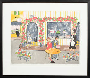 Marika Lang (f. 1961), Sverige. Bistro. Signerad, numrerad 98/350. Färglitografi, bildmått: 23x31 cm, yttermått inklusive ram: 41x49 cm. Marika Lang, född 1961 i Göteborg, svensk Läs mer...